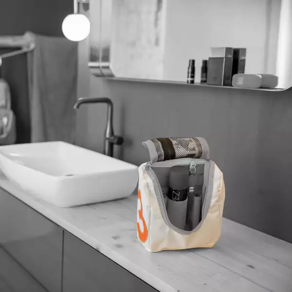 Der perfekte Kulturbeutel für die nächste Reise. Die praktische Unterteilung macht es einfach, Ordnung zu halten und das schlichte Design macht diesen Liebling auch noch zu einem Genuss für das Auge.