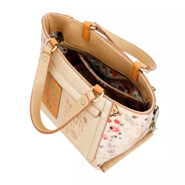 Der süße Shopper bietet Platz für alles was im Alltag nicht fehlen darf und kann lässig an de zwei kurzen Henkeln oder cool crossbody getragen werden.