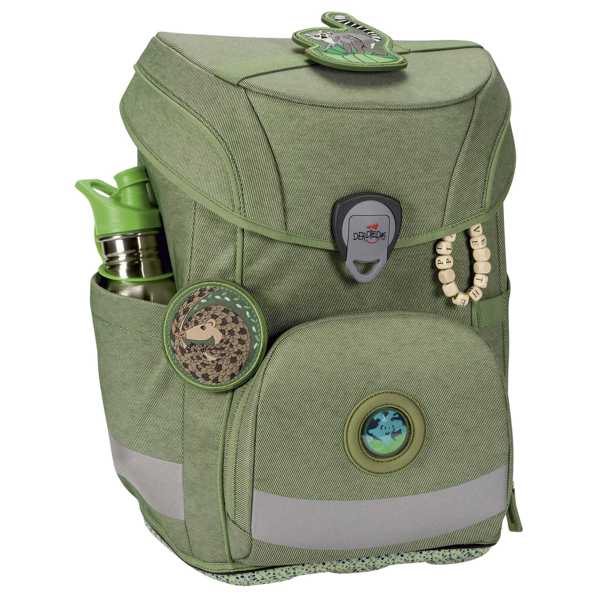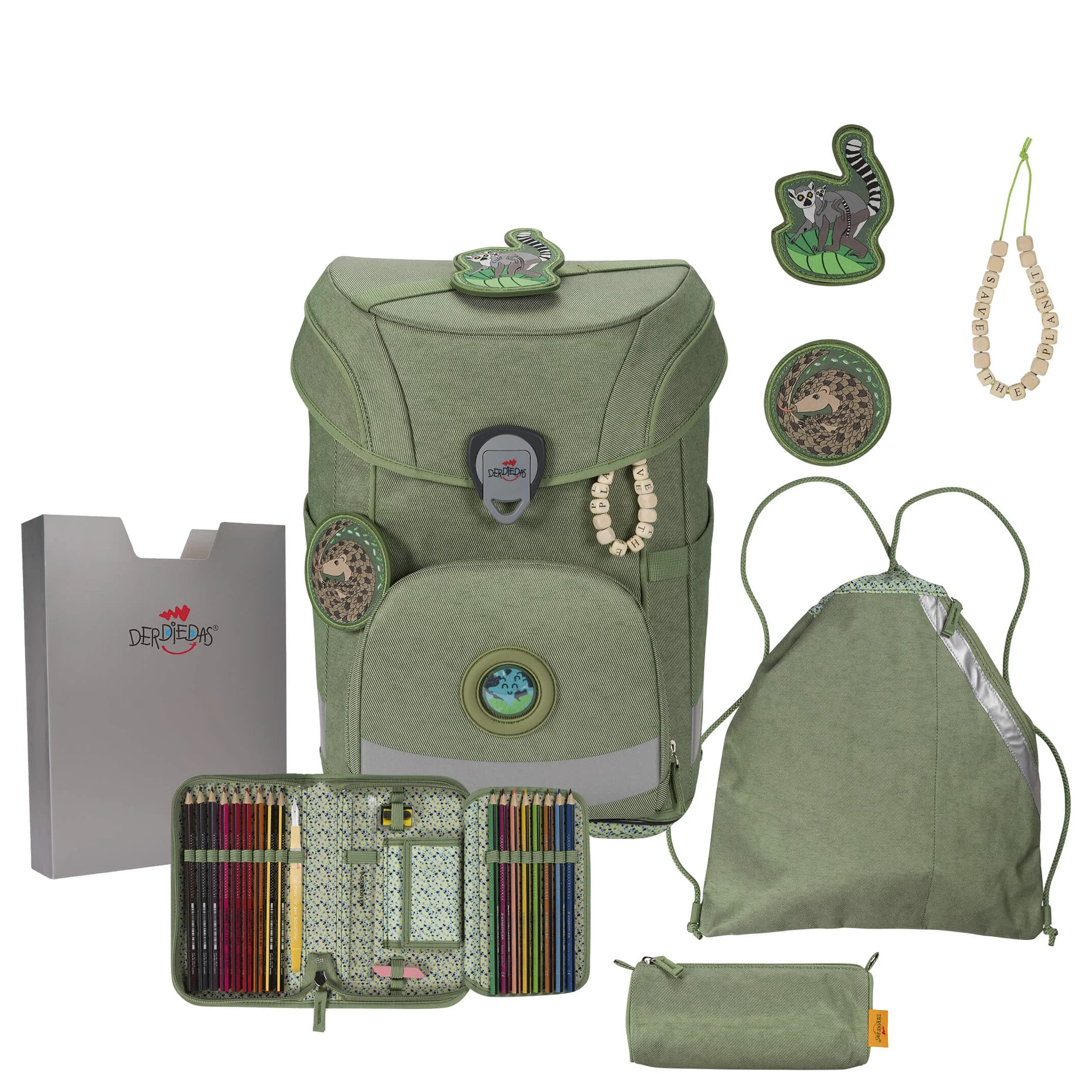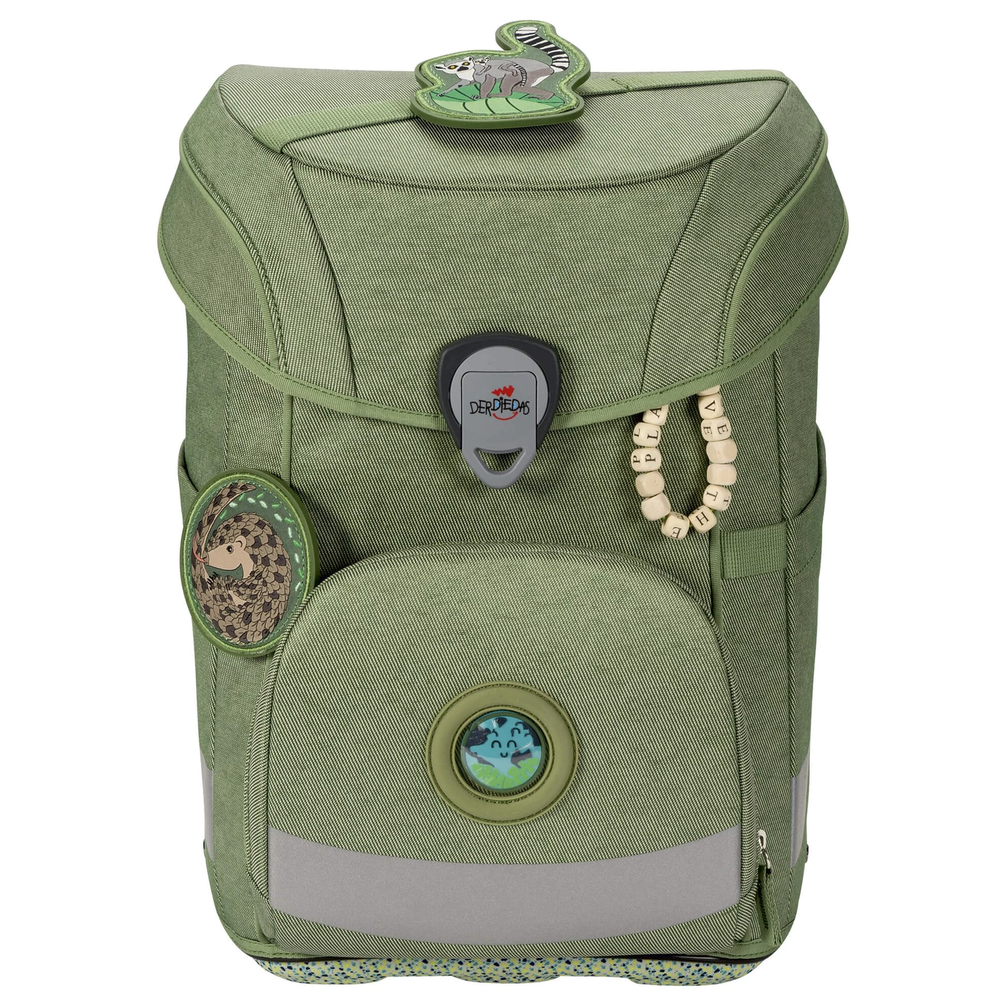Er ist ein wahrer Superheld, denn der Ranzen besteht zu 100% aus natürlichen und recycelten Materialien. Das ist aber noch nicht alles: Das ist aber noch nicht alles: Unser komfortabler Ranzen kommt mit schlanker, aber fester Silhouette und hat viel Platz für Bücher, Hefte & vieles mehr. Mit seinen tollen Blue Planet Wechselbuttons und Anhänger lässt er sich im Handumdrehen zu einem tierischen Unikat umgestalten. Genau das Richtige für kleine und große Umwelthelden -und Heldinnen. Und dank seines cleveren Tragegurtsystems wächst er mit und entlastet den Kinderrücken. Die großen reflektierenden Flächen sorgen für einen sicheren Schulweg.