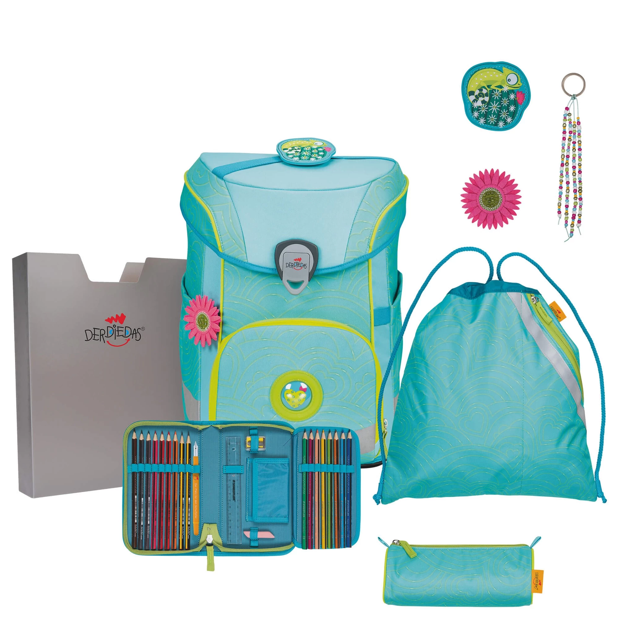 So komfortabel wie nie – der ErgoFlex Easy mit schlanker, aber fester Silhouette hat viel Platz für Bücher, Hefte & vieles mehr. Das ist aber noch nicht alles: Mit seinem extrahellen LED-Ring um das Bullauge herum besonders sichtbar und unübersehbar im Dunkeln. Die supercoolen Cyber Dino Wechselbuttons und Anhänger machen den Schulrucksack zu einem Urzeit-Unikat. Dank seines cleveren Tragegurtsystems wächst er mit und entlastet den Kinderrücken. Die großen reflektierenden Flächen sorgen zusätzlich für einen sicheren Schulweg.