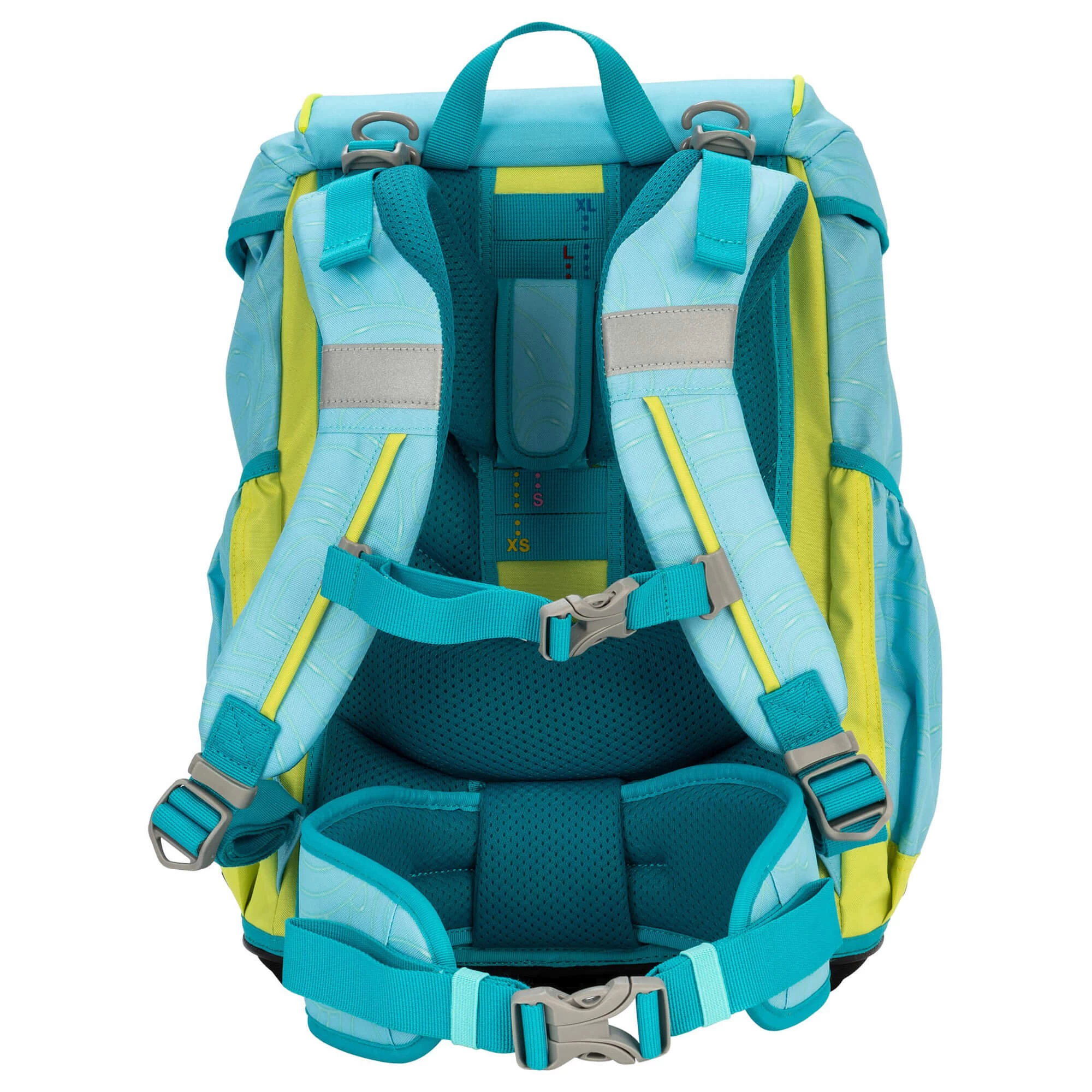 Der ErgoFlex Schulrucksack wird durch den extrahellen LED-Ring um das Bullauge herum besonders sichtbar und unübersehbar im Dunkeln. Dank seines cleveren Tragegurtsystems wächst er mit und entlastet den Kinderrücken. Die großen reflektierenden Flächen sorgen zusätzlich für einen sicheren Schulweg. Der Schulrucksack von DerDieDas ist durch seinen ergonomischen Aufbau mit einem verstärkten und gepolsterten Rückenteil, dem Lagekontrollriemen zur optimalen Anpassung im Schulterbereich, ergonomischen Tragegurten (einfach mit Klettband zu fixieren und stufenweise von XS bis XL an die Rückenlänge des Kindes anpassbar), einem verstellbaren Brustgurt und Beckengurt, optimal auf die Anatomie Ihres Kindes anpassbar. Die Deckelschschließe ist mit einem Fidlock Magnetschloss ausgestattet. Ein geräumiges Frontfach bietet Platz für das Etui oder die Brotdose. In den flexiblen Seitentaschen lassen sich eine Trinkflasche und der Regenschirm sicher verstauen