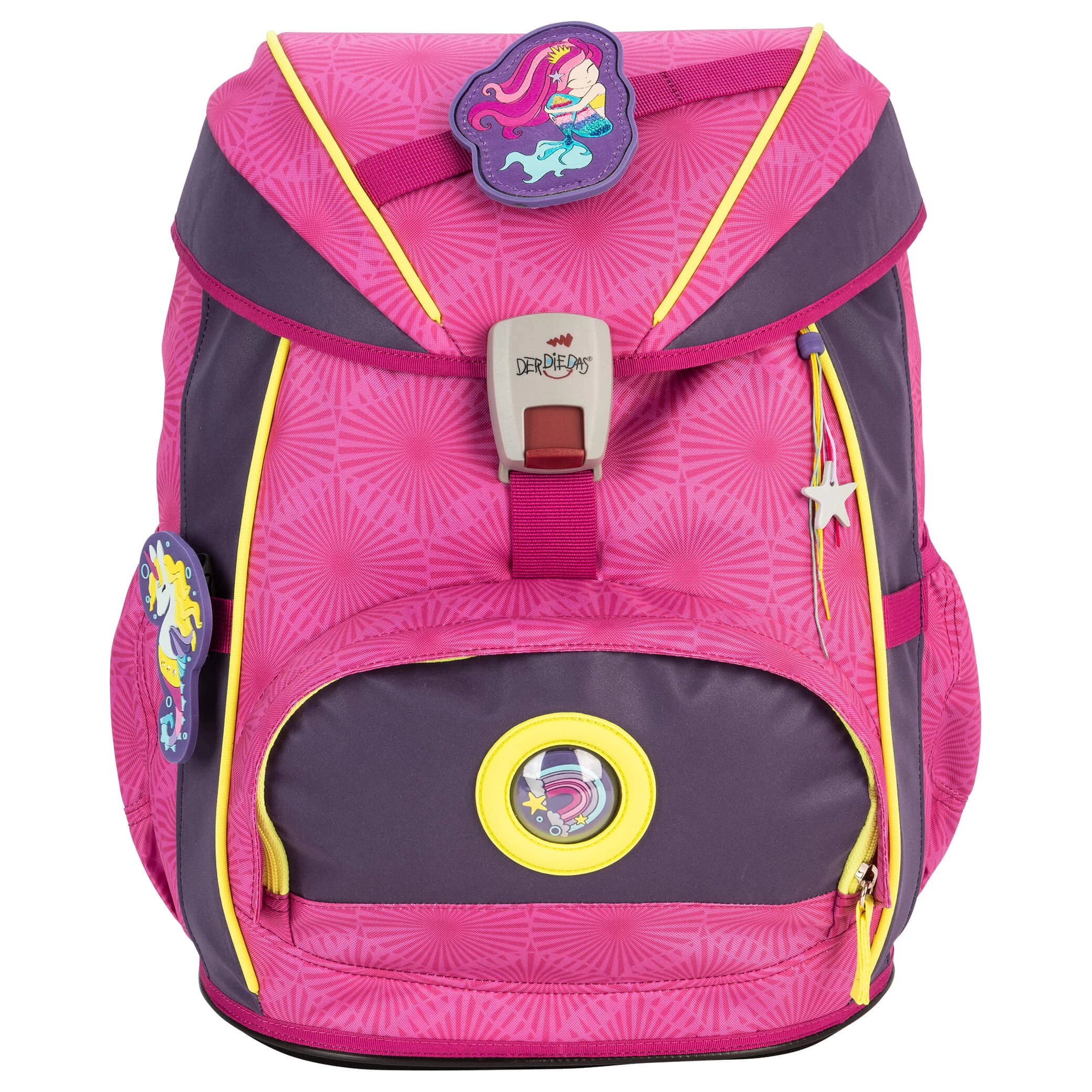 Jeder Schulranzen von DerDieDas Ergoflex Superflash ist bereits mit einem höhenverstellbaren Brustgurt und einem abnehmbaren Beckengurt (inkl weichen Beckenflossen) ausgestattet. Das sorgt für einen festen Sitz auf dem Rücken und verlagert den Schwerpunkt zudem auf die Hüfte, was spürbar Schultern und Rücken entlastet. Der Superflash fällt im Straßenverkehr dank retroreflektierenden Flächen einfach immer auf und sorgt für einen sicheren Schulweg. Der Schulranzen besitzt eine angenehm, weiche Rückenpolsterung und ist atmungsaktiv und körpergerecht geformt, um auch ein längeres Tragen zu ermöglichen. Das größte Highlight des Ergoflex, ist das komplett auf die Rückenlänge einstellbare Schultergurtsystem. Die Schultergurthöhe kann so per Klettverschluss mehrstufig, von XS bis XL, auf die Rückenlänge des Trägers eingestellt werden. So ist auch ein Wachstumsschub kein Problem mehr, der Rucksack passt sich einfach seinem Träger an – nicht umgekehrt!