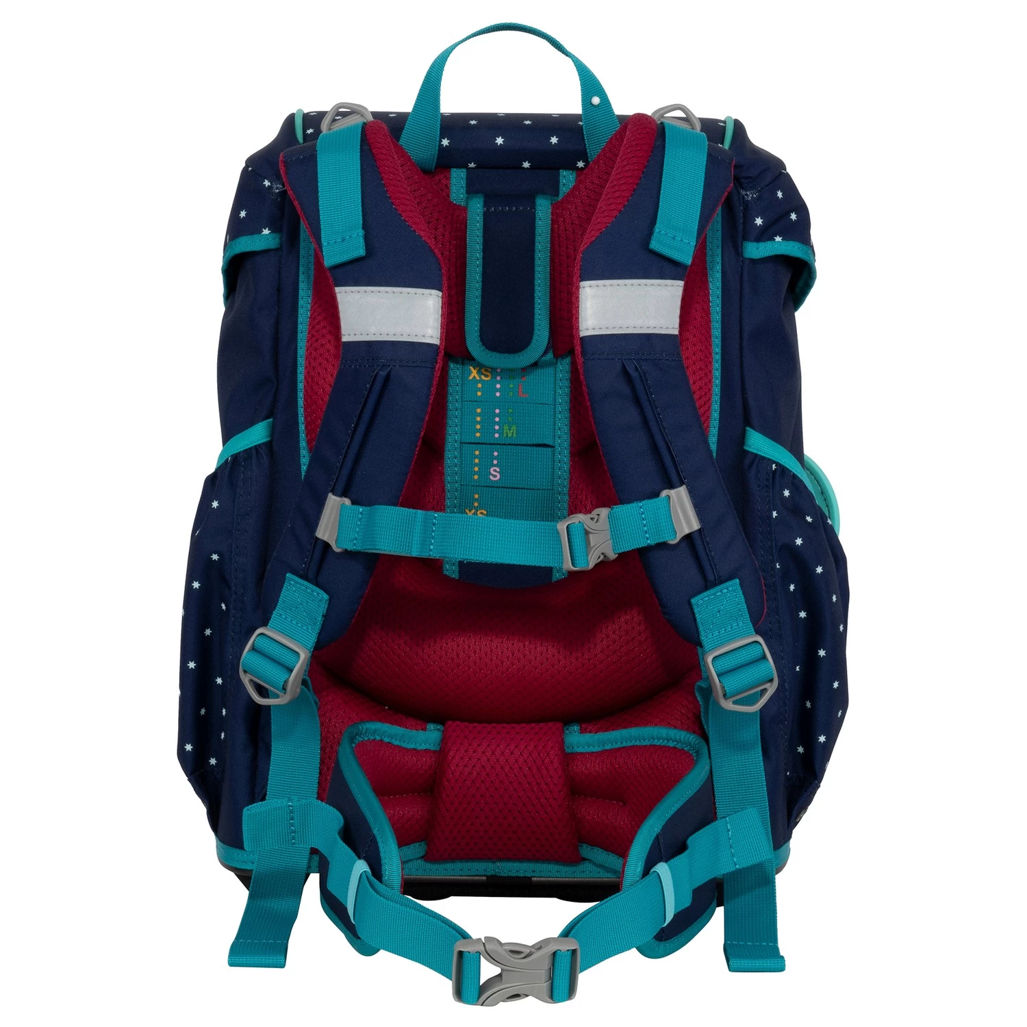 und Rücken. Bei Bedarf abnehmbar. - 7 Buttons zum Anklippen an Schulranzen und Sporttasche –