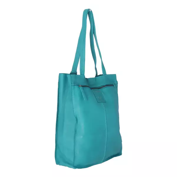 Dieser Shopper ist aus besonders weichem Rindsleder gefertigt und läßt sich an den beiden Riemen bequem über der Schulter tragen.