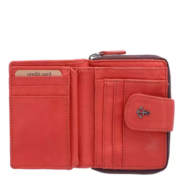 Mit dieser kleinen süßen Geldbörse aus der Anchor Love Serie von Harbour 2nd haben Sie auf Ihrem Shoppingtrip – oder überall anders – in jedem Fall immer alles dabei. Die Börse ist aufgeteilt in einen Teil für viele Karten und einen Teil für Münzen. Das Münzfach, welches sich durch einen Reißverschluss öffnen lässt und getrennt vom Karten-Teil ist, ist innen nochmal durch ein kleines Reißverschlussfach in der Mitte geteilt. So können Sie verschiedene Währungen trennen oder andere Dinge aufgewahren, die Sie von Ihrem Münzgeld trennen möchten…