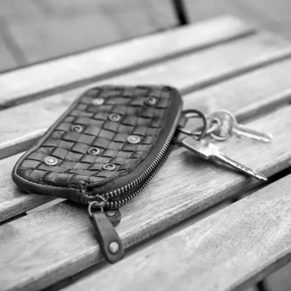 Lulu ist entzückt uns ebenfalls – sie ist eine perfekte, kleine Schlüsseltasche mit stylischem Flechtmuster und Nietendetails, vom Hamburger Kultlabel Harbour 2nd. Dieser schnuckelige Liebling aus der Soft Weaving Serie bietet gerade genug Platz für Schlüssel und Kreditkarte, oder etwas Bargeld.