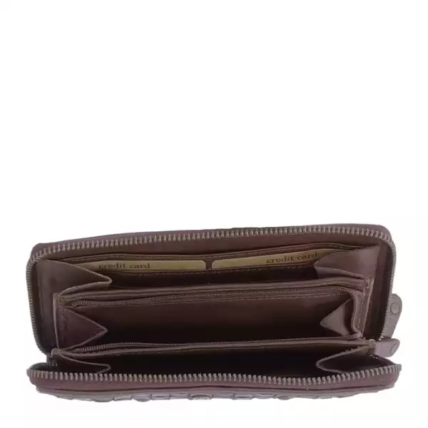 Dieser Liebling schließt mit einem Reißverschluss und verfügt über 2 Geldscheinfächer, ein dazwischenliegendes Münzfach mit Reißverschluss, zwei Dokumentfächer, sowie acht Kartenfächer.