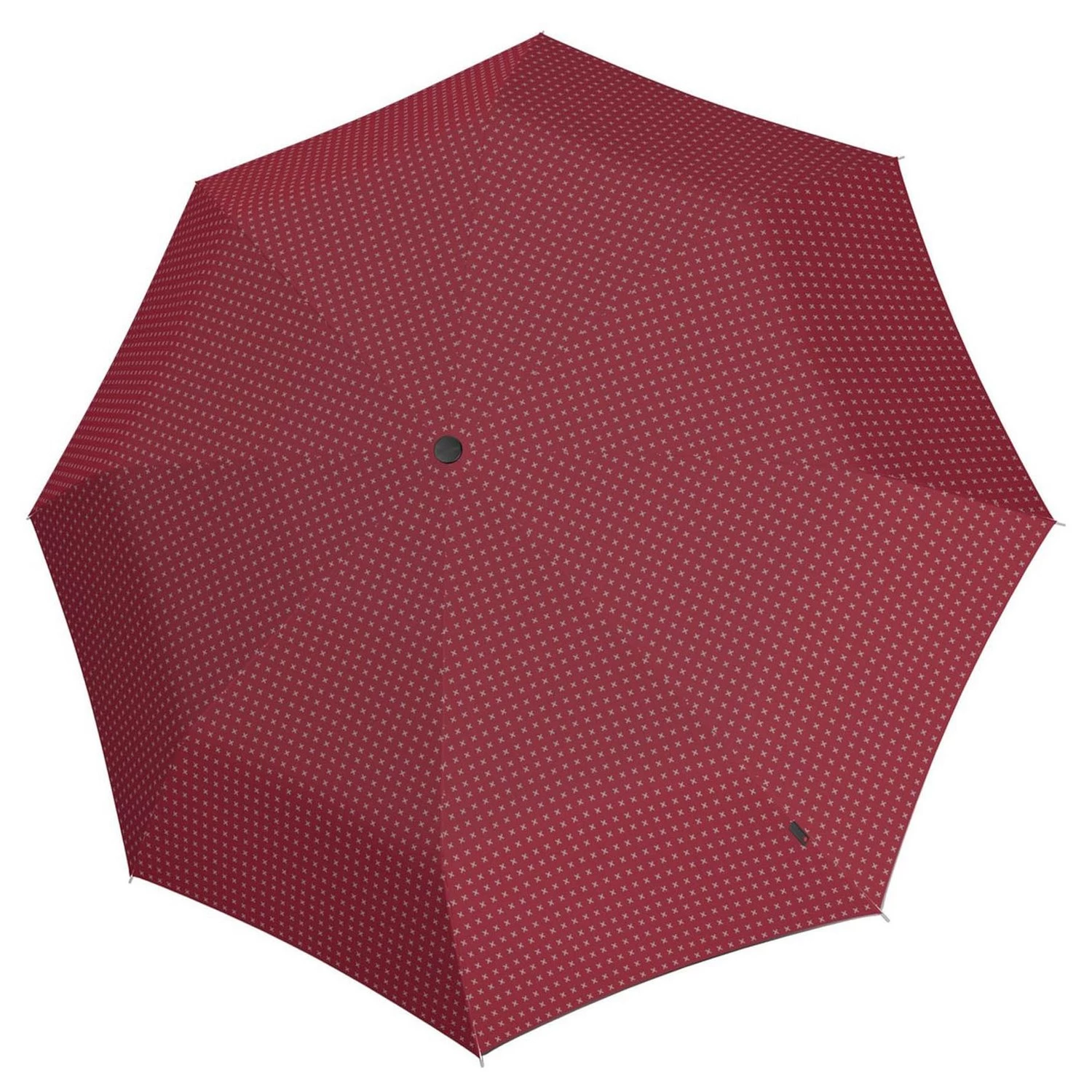 Der T.010 Manual von Knirps präsentiert sich mit selbstbewusster Stärke. Auch bei starkem Regen überrascht der kleinste Schirm der T.Serie mit seinem großen Schirmdach trotz kompakten Abmessungen, da dieser eine geschlossene Länge von 18 cm hat und somit in jede Tasche passt.