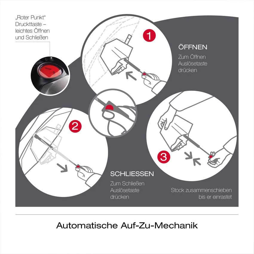 Verschlussmechanismus - Material Schirmbespannung: 100% Polyester