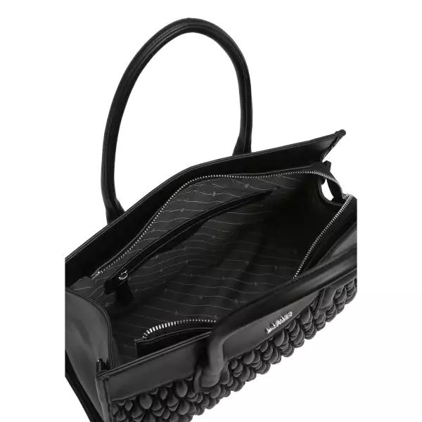 Modische Steppungen verleihen der klassischen Silhouette der Handtasche LAICA das individuelle Design. Silberfarbene Details und ein kleines, oben platziertes Emblem unterstreichen stilvoll den eleganten Look. Im Inneren finden sich je zwei Steck- und Stiftfächer und ein Reißverschlussfach. Praktisch: Mit dem Schultergurt wird LAICA im Nu zur lässigen Umhängetasche.