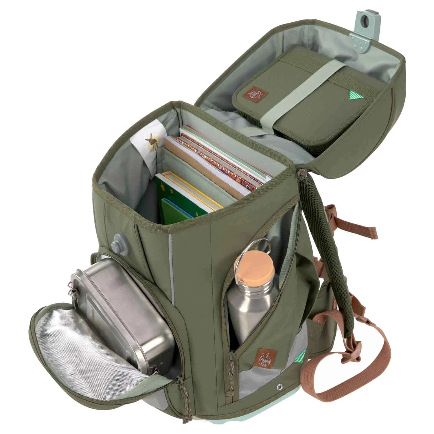 Durch sein schmutz- und wasserabweisendes Material ist er auch bei größeren Abenteuern ein verlässlicher Begleiter. Und auch die Nachhaltigkeit kommt nicht zu kurz: Die Unique Kollektion setzt auf recyceltes Polyester. So gibt die Herstellung eines Schulranzen Sets bis zu 35 gebrauchten Plastikflaschen einen neuen Sinn. Auch auf tierische Bestandteile wurde im Herstellungsprozess vollständig verzichtet, wodurch das School Set Boxy Unique das Label „PETA-Approved Vegan” trägt.