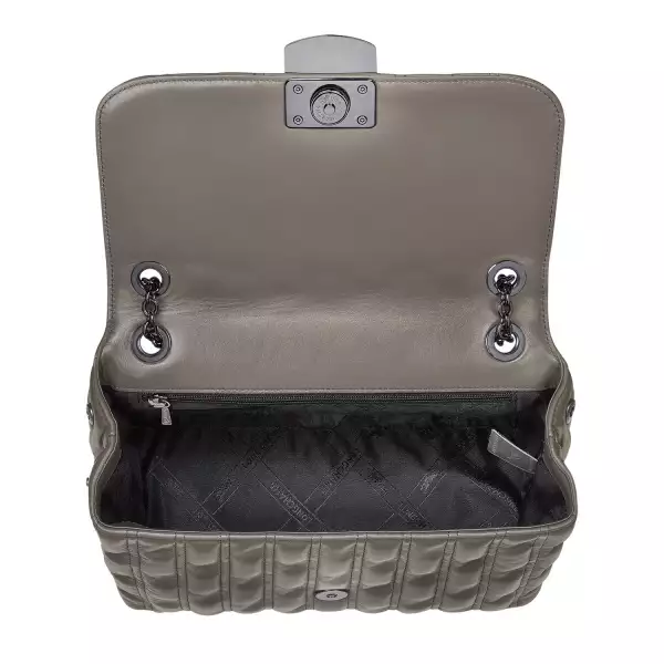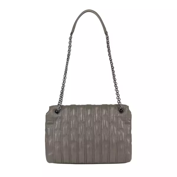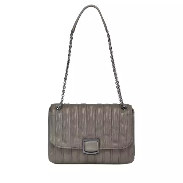 Die filigranen, gleitenden Metallketten ermöglichen unterschiedliche Tragevarianten und verleihen diesem Liebling das gewisse Etwas. Auch der Überschlag mit dem auffallenden Verschluss aus Leder und Metall setzt einen zusätzlichen eleganten Akzent.