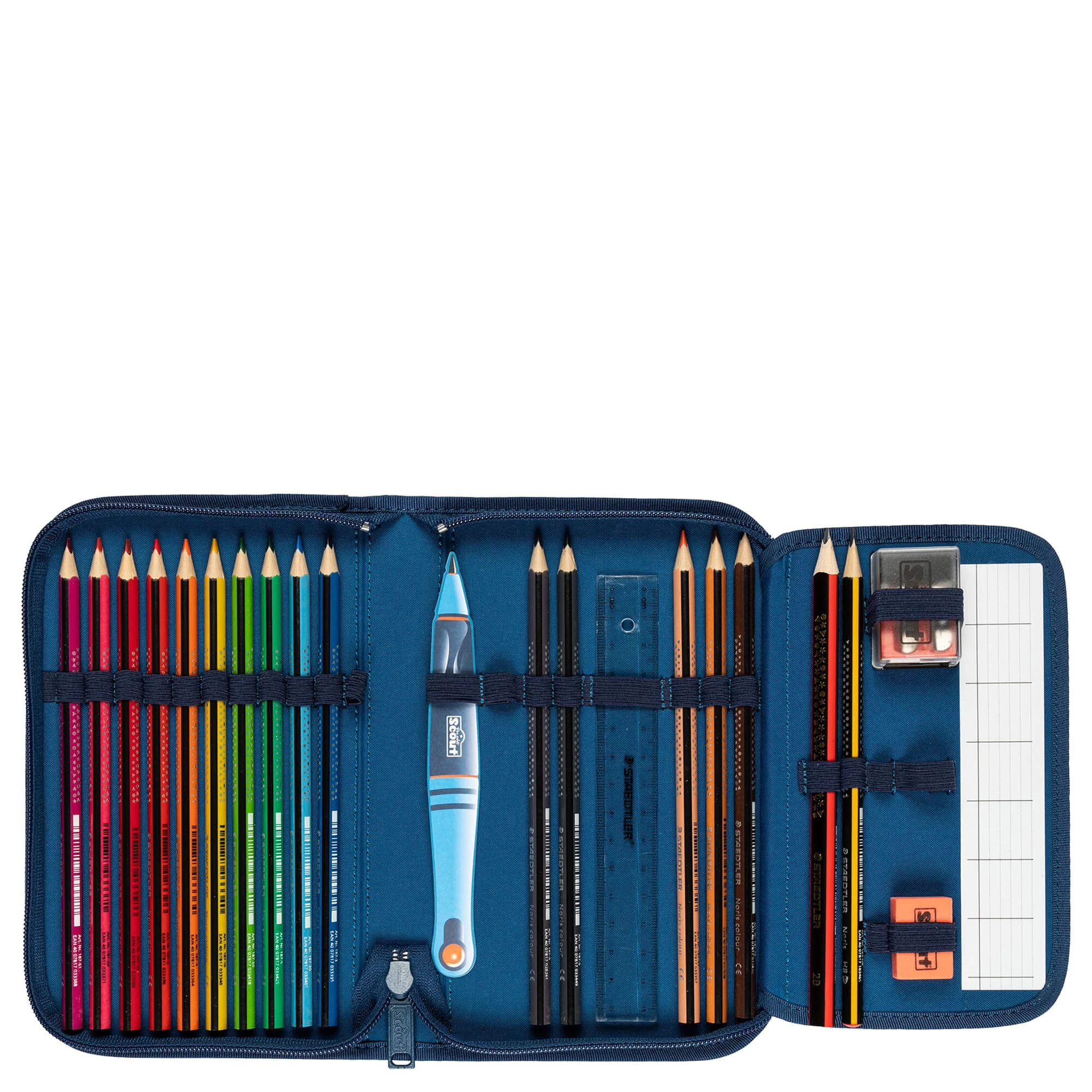 Seit über 180 Jahren macht STAEDTLER aus einem Schreibgerät einen Lieblingsstift und hat damit einen festen Platz in unseren Federmäppchen. Zudem findet ihr neben Lineal, Spitzer und Radiergummi zwei extragroße Schlaufen für Schreiblernstifte und einen dicken Bleistift. Mit dem Stundenplan, der im integrierten Klarsichtfach zu finden ist, könnt ihr dann direkt in den Schulalltag starten