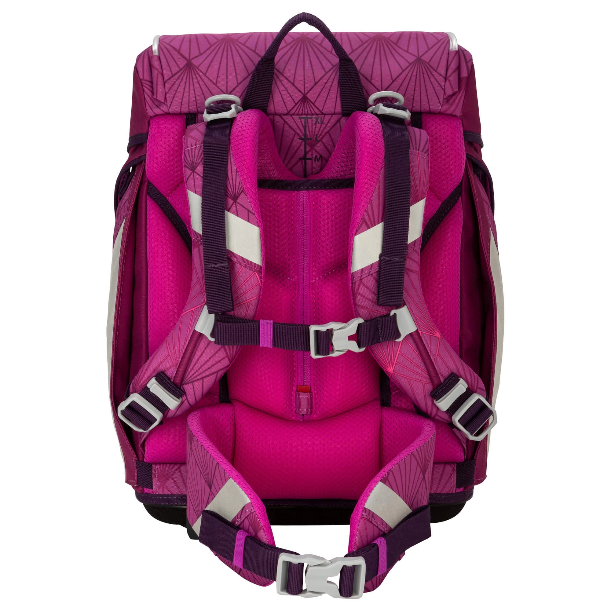 Lagekontrollriemen für optimalen Sitz im Schulterbereich. Bequeme, mit atmungsaktivem 3D-Mesh gepolsterte, S-förmige Tragegurte in optimaler Breite (5 cm) und Länge (mindestens 50 cm) mit Sicherheitsreflektoren. Körpergerecht geformtes Rückenpolster, konstruiert auf der Basis von über 600 Rückenprofilen von Kindern zwischen 6 und 10 Jahren, atmungsaktiv mit Mesh gepolstert.