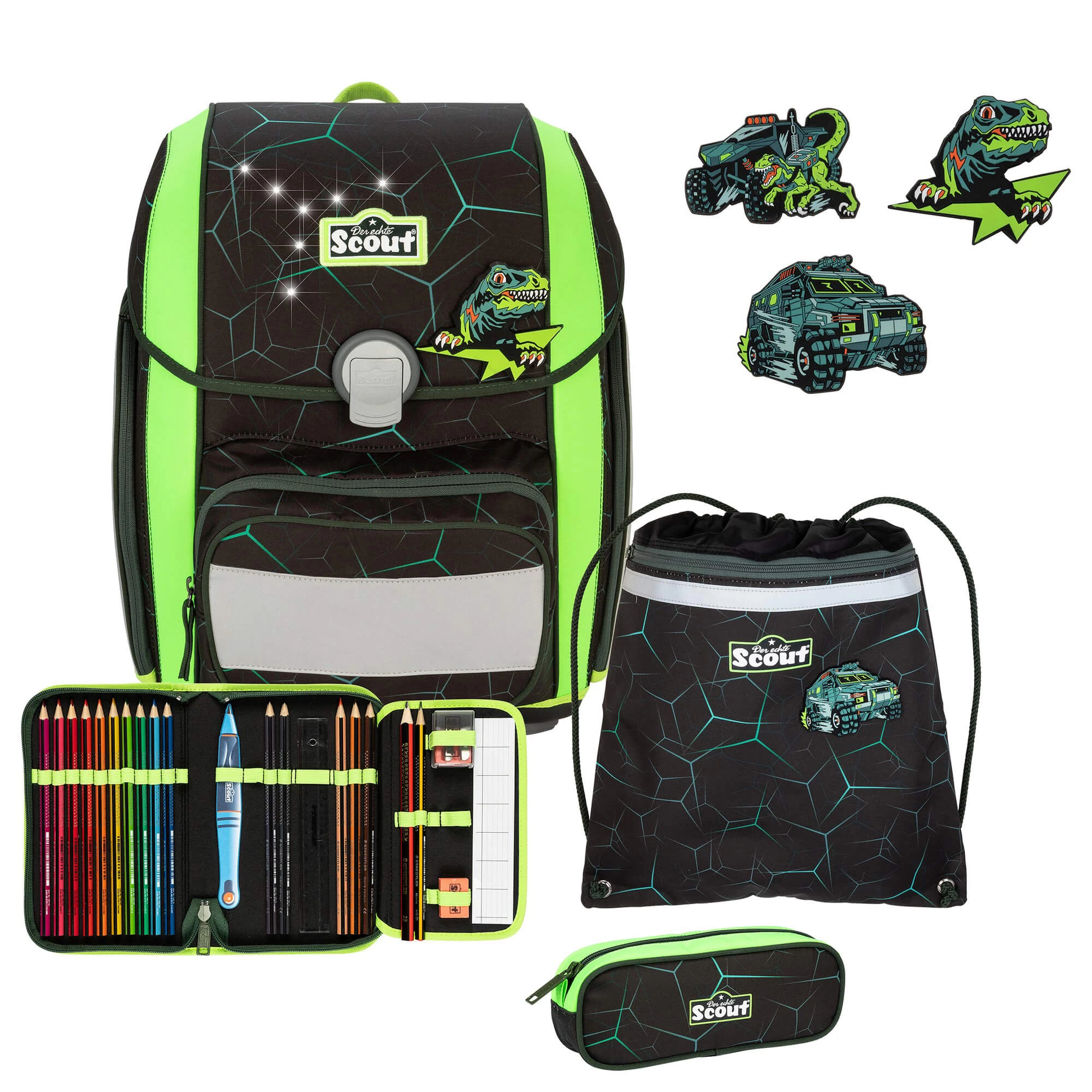 Der Genius Schulranzen von Scout ist der stabile Klassiker: strapazierfähig, robust und mit ordentlich viel Platz. Die sieben blinkenden LED-Lichter der LED-Exklusiv-Kollektion und zusätzliche retroreflektierende Flächen bringen die jüngsten sicher zur Schule. Die astronomisch schönen Sternenhimmel Funny Snaps machen den Genius zum himmlischen Begleiter und verleihen dem Ranzen die extra Portion Sternenzauber. Durch das höhenverstellbare Tragegurtsystem wächst der Schulranzen die ganze Grundschulzeit einfach mit. Der Scout Genius Exklusiv LED Sternenhimmel Schulranzen kommt im 4-teiligen Set mit Sporttasche, Federmäppchen inklusive Staedtler Qualitätsstiften, Schlamper-Etui sowie 3 Funny Snaps.