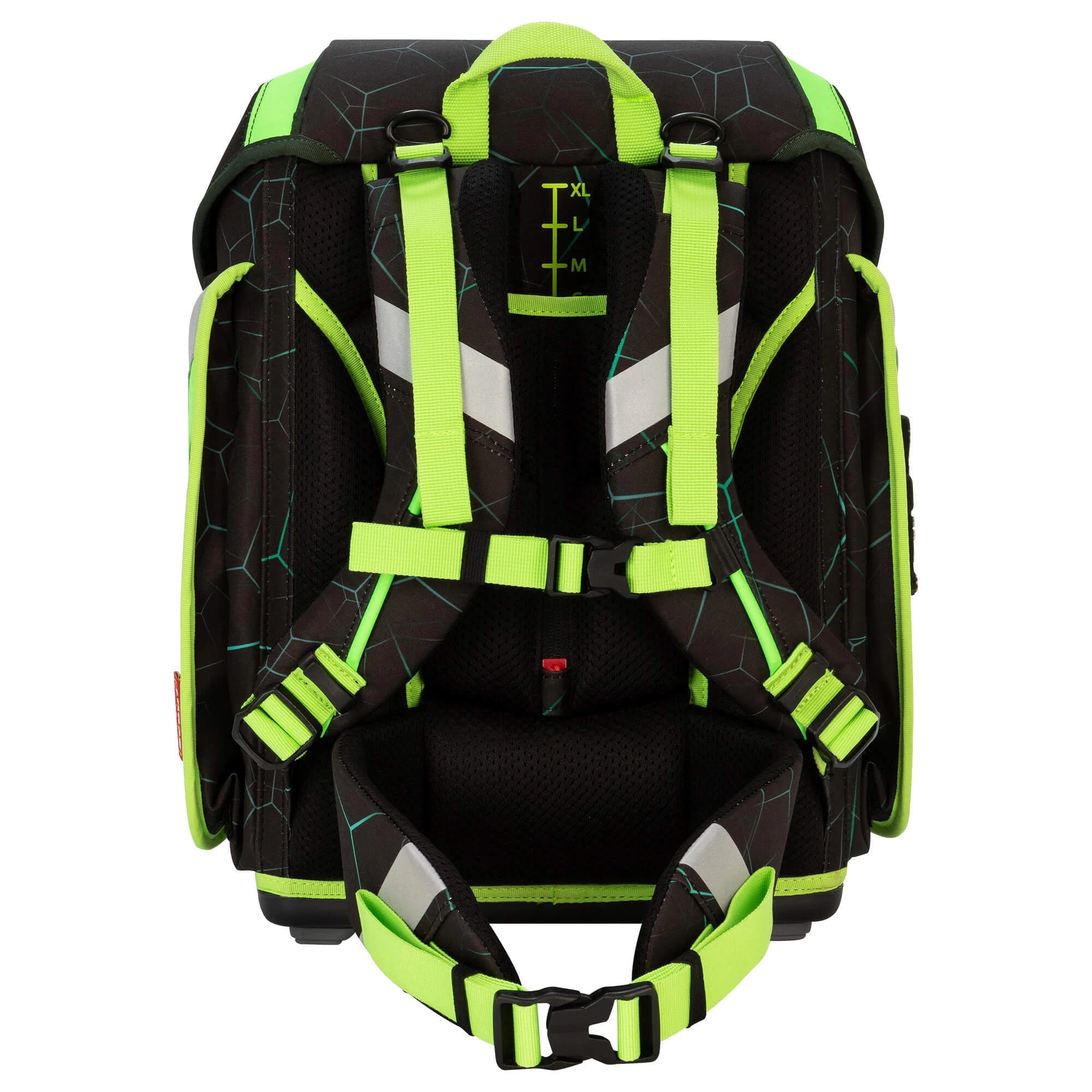 Unser aktiver Beitrag zum Umweltschutz: Das Außengewebe und das Innenfutter bestehen aus recycelten Polyesterfasern, die aus PET-Flaschen gewonnen werden. Das macht den gesamten Ranzen gleichzeitig zu 100 Prozent recyclingfähig.