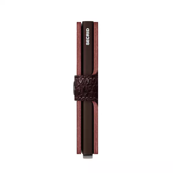 Das Miniwallet von Secrid besteht aus einem Cardprotector aus Aluminium und einer Hülle aus hochwertigem Leder, die mit einem Druckknopf schließt. In dem Cardprotector können bis zu vier Karten mit oder sechs Karten ohne Prägung untergebracht werden. Zudem ist in der Lederhülle Platz für sechs weitere Karten, sowie für Banknoten und Belege.