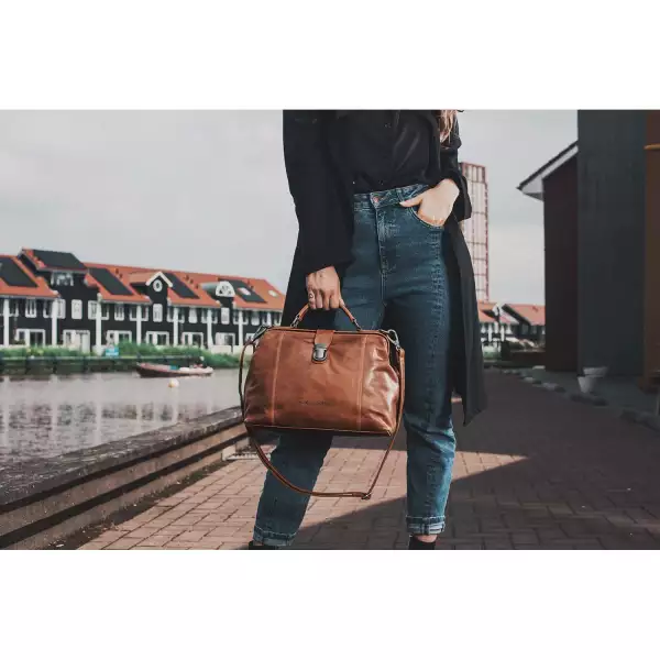 Diese tolle Tasche im Arzttaschen-Stil heißt Shaun und kommt aus dem Hause The Chesterfield Brand. Die großzügige Öffnung macht das Be- und Entpacken besonders leicht. In dem geräumigen Hauptfach befinden sich mehrere Fächer, davon ein Handyfach und eine Reißverschlusstasche. Eine zusätzliche Reißverschlusstache ist auf der Rückseite. Neben einem stabilen Tragegriff, gibt es auch einen abnehmbaren Schultergurt. Das speziell verwendete Wachs-Pull-Up Leder ist extrem geschmeidig, was die Tasche zu einem Lieblingsbegleiter macht.